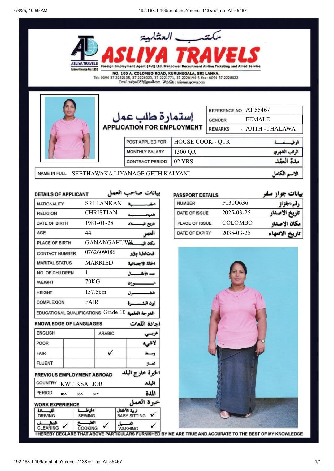 الاسم - عربي جيث كالياني سيثاواكا ليانج