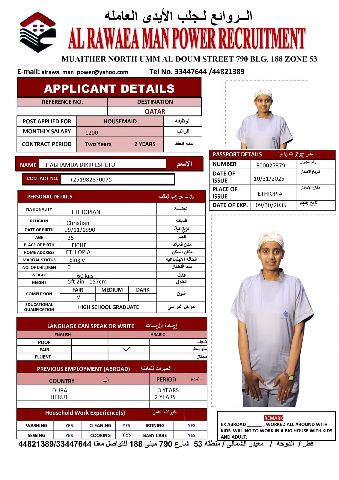 الاسم - عربي habitamua dikir eshetu