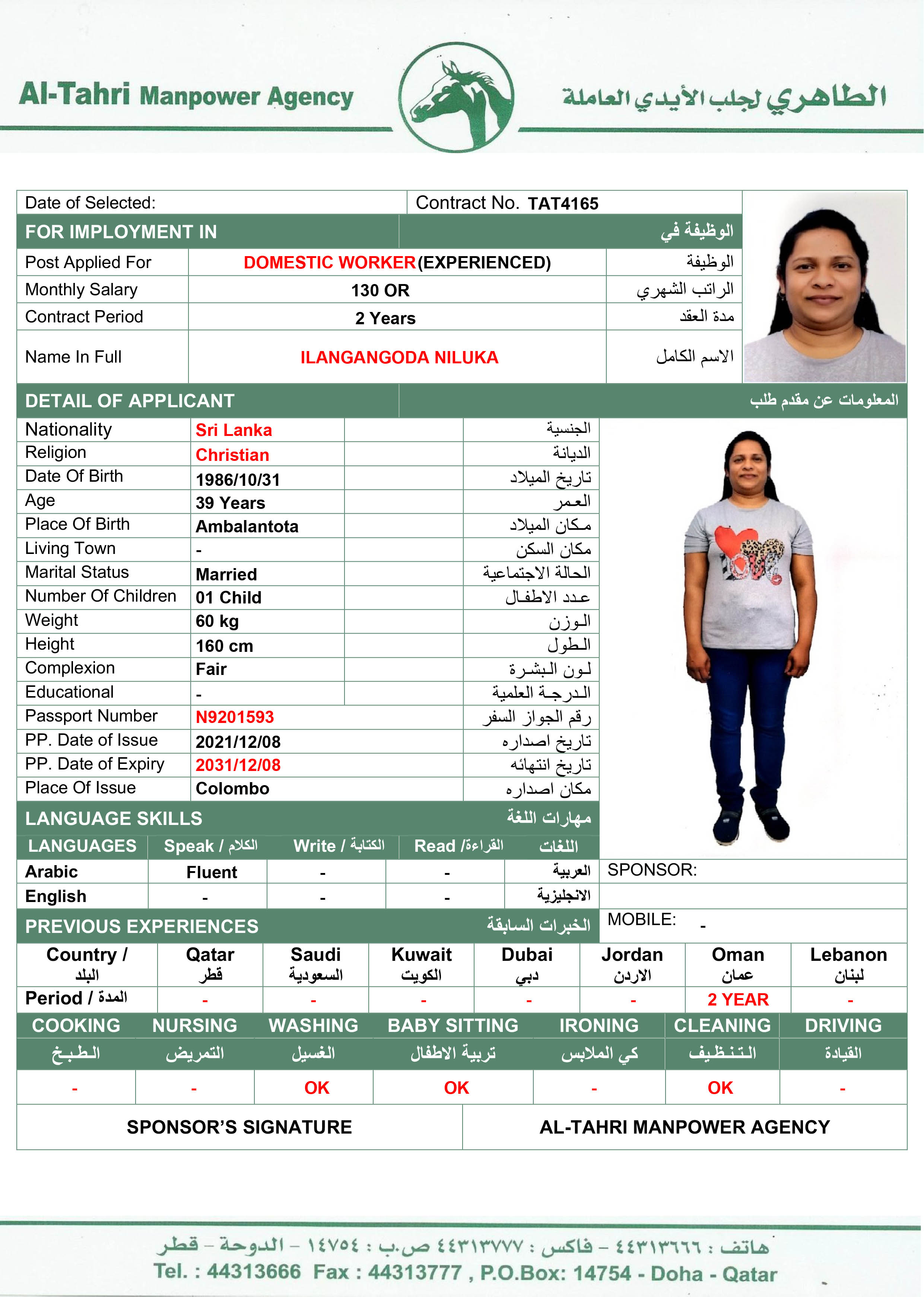 الجنسية سريلانكا