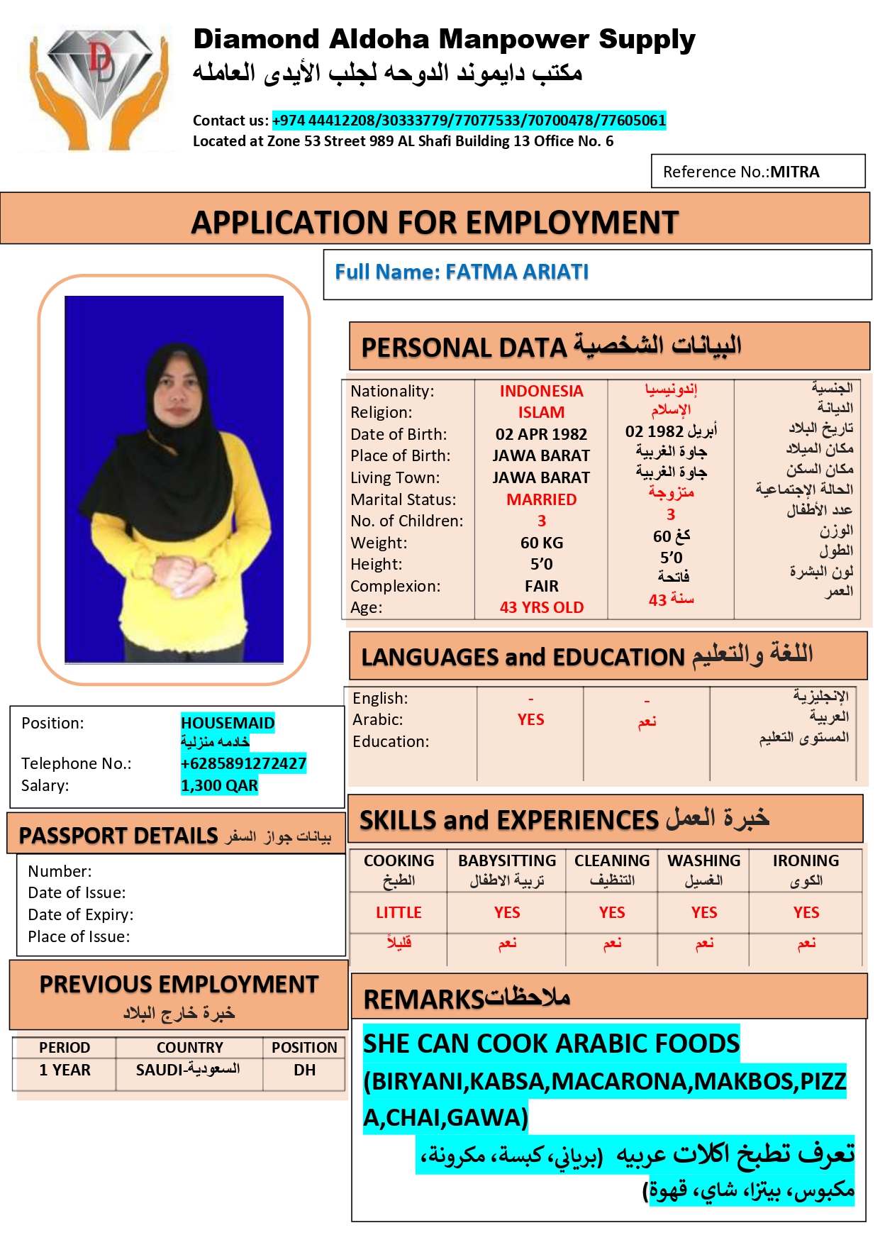 الشركة ‏ دايموند الدوحة لجلب الايدى العاملة