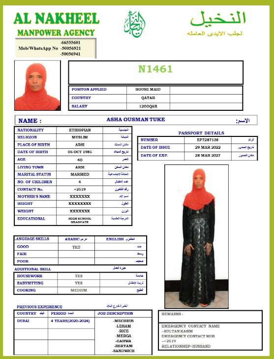 الاسم - عربي ASHA OUSMAN TUKE