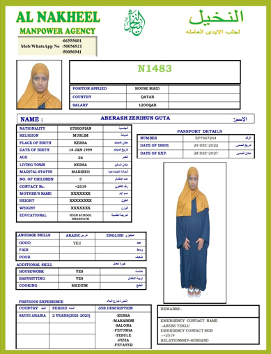 الاسم - عربي ABERASH ZERIHUN GUTA