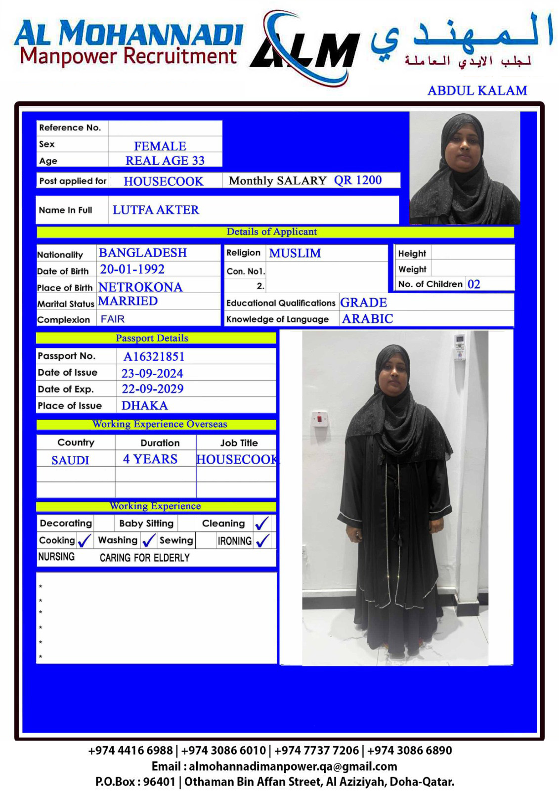 الاسم - عربي LUTFA AKTER
