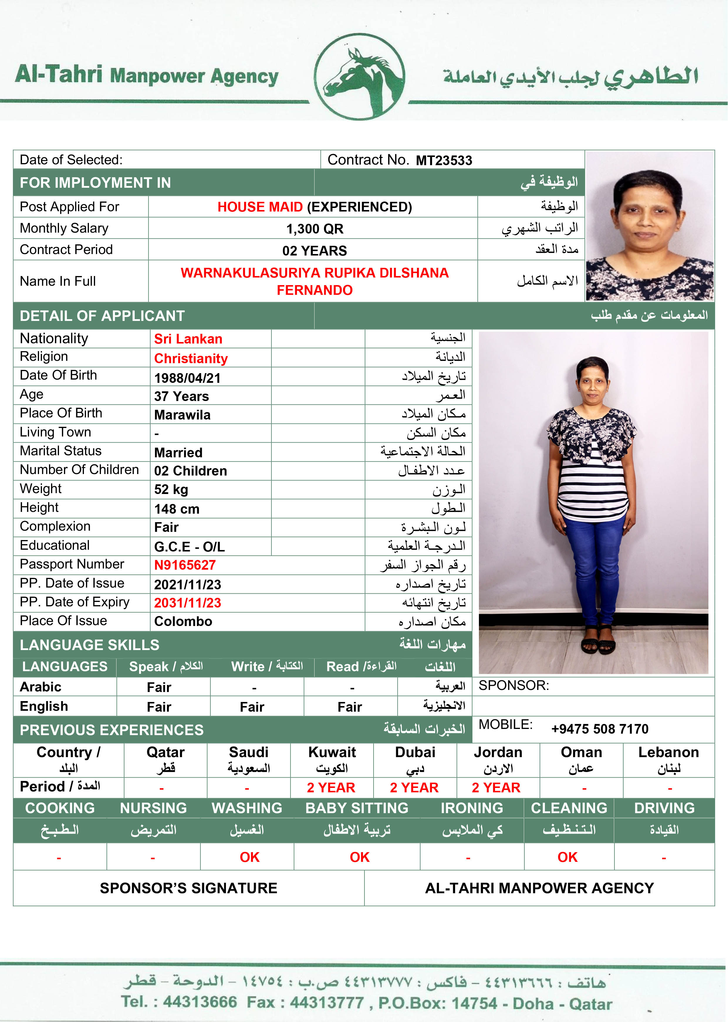 الجنسية سريلانكا