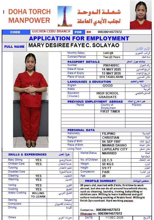 الاسم - عربي MARY DESIREE FAYE C SOLAYAO