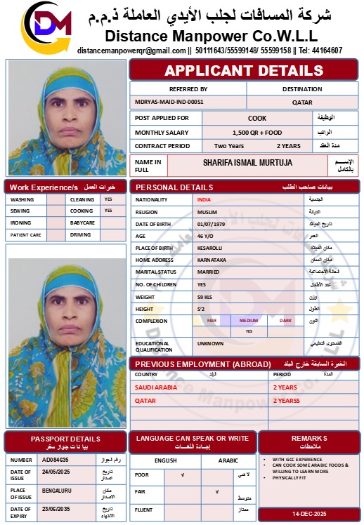الشركة ‏ المسافات لجلب الايدي العاملة H
