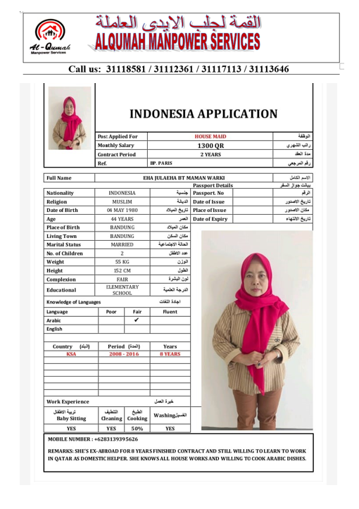 الاسم - عربي EHA JULAEHA MAMAN WARKI