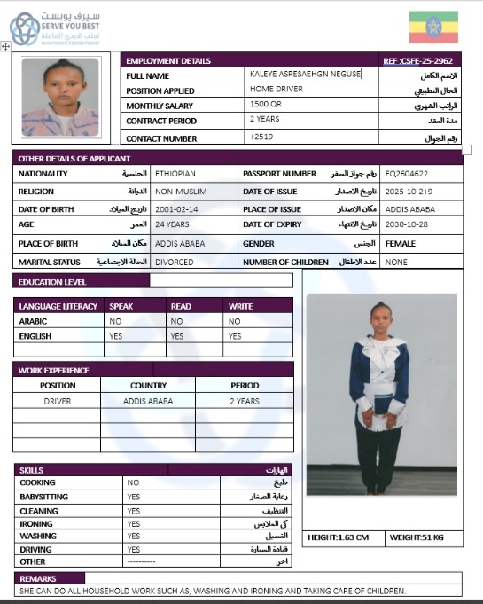 الاسم - عربي KALEYE ASRESAEHGN NEGUSE