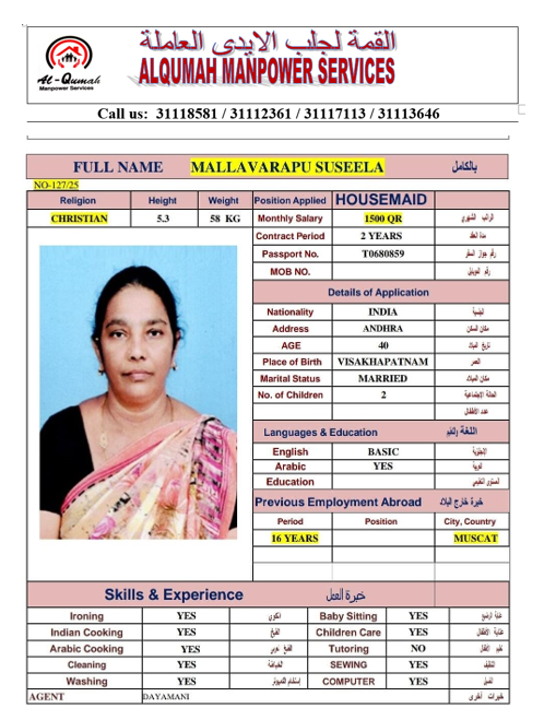 الاسم - عربي SUSEELA MALLAVARAPU