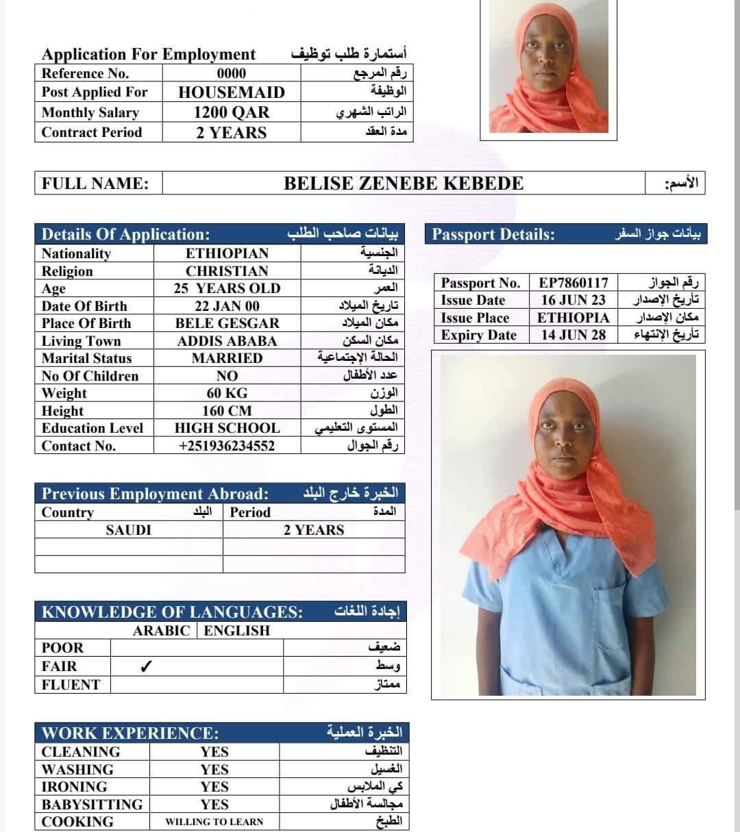 الاسم - عربي BELISE ZENEBE KEBEDE