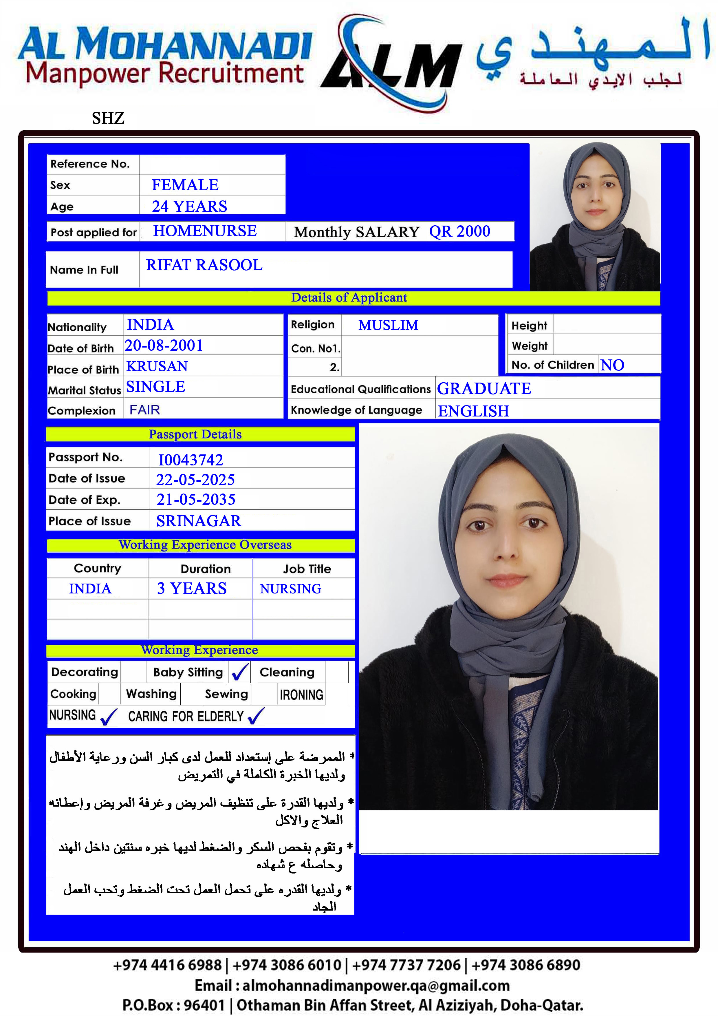 البريد الإلكتروني almohannadimanpower.qa@gmail.com