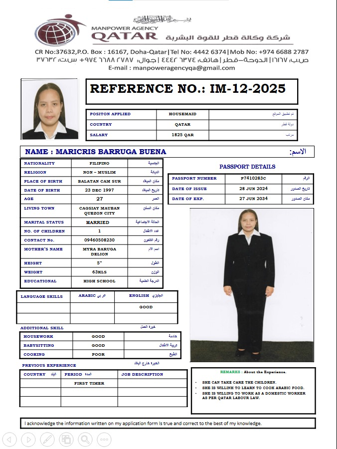 الاسم - عربي ماريسريس باروغا بوينا