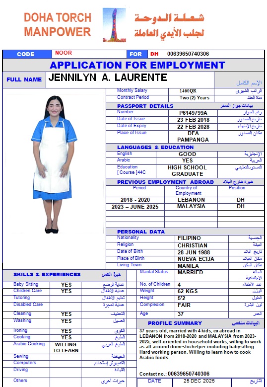 الاسم - عربي JENNILYN A LAURENTE
