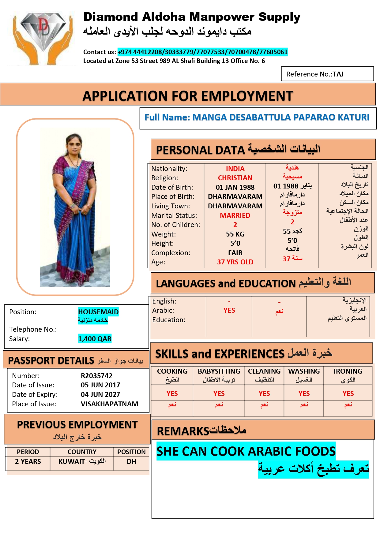 الاسم - عربي MANGA DESABATTULA PAPARAO KATURI