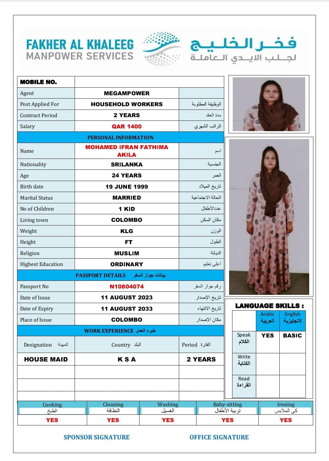 الاسم - عربي محمد إفران فاطمة عاقلة