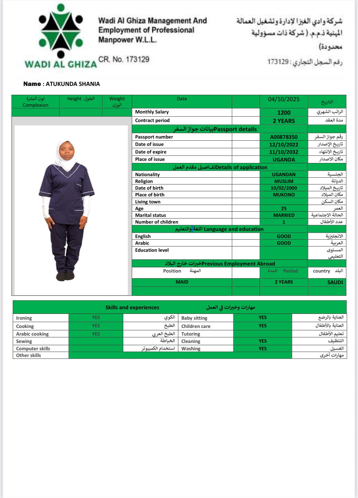بيانات العامل