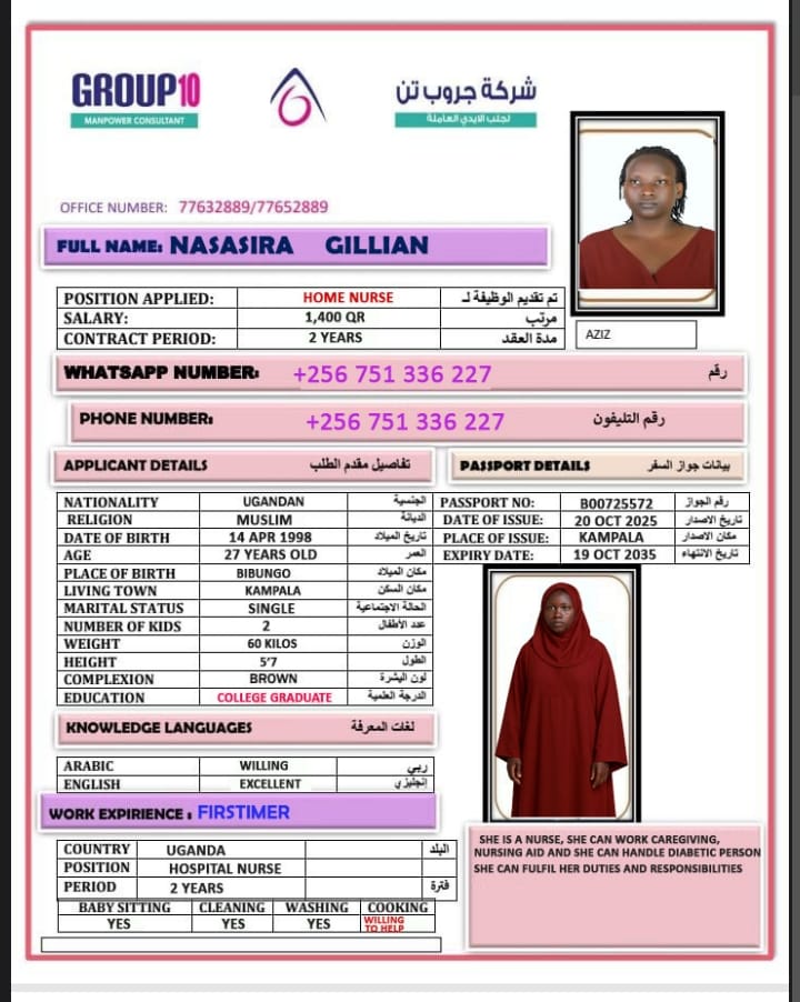 الاسم - عربي GILLIAN NASASIRA/UGANDAN NURSE