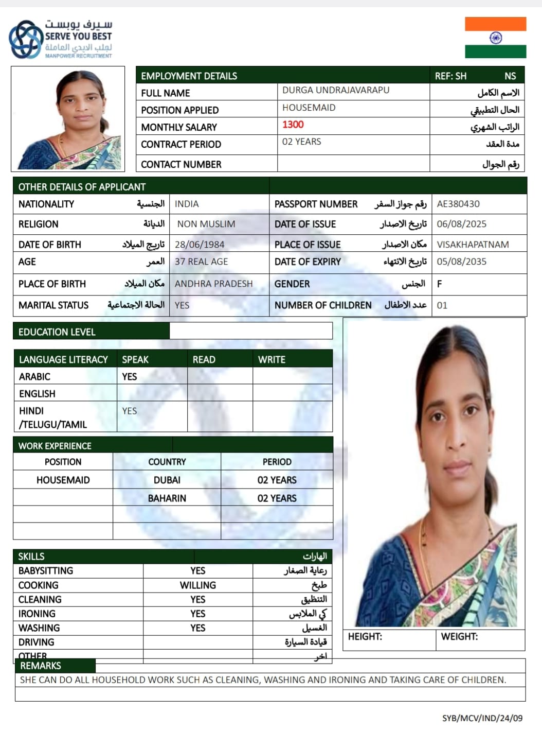 الاسم - عربي DURGA UNDRAJAVARAPU