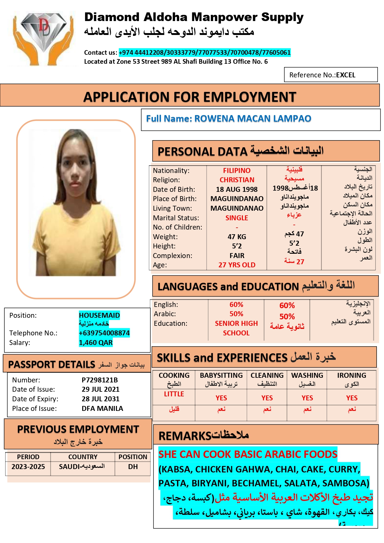 الشركة ‏ دايموند الدوحة لجلب الايدى العاملة