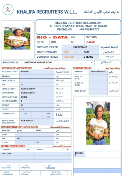 الاسم - عربي JOSEPHINE MUMBE NDIN
