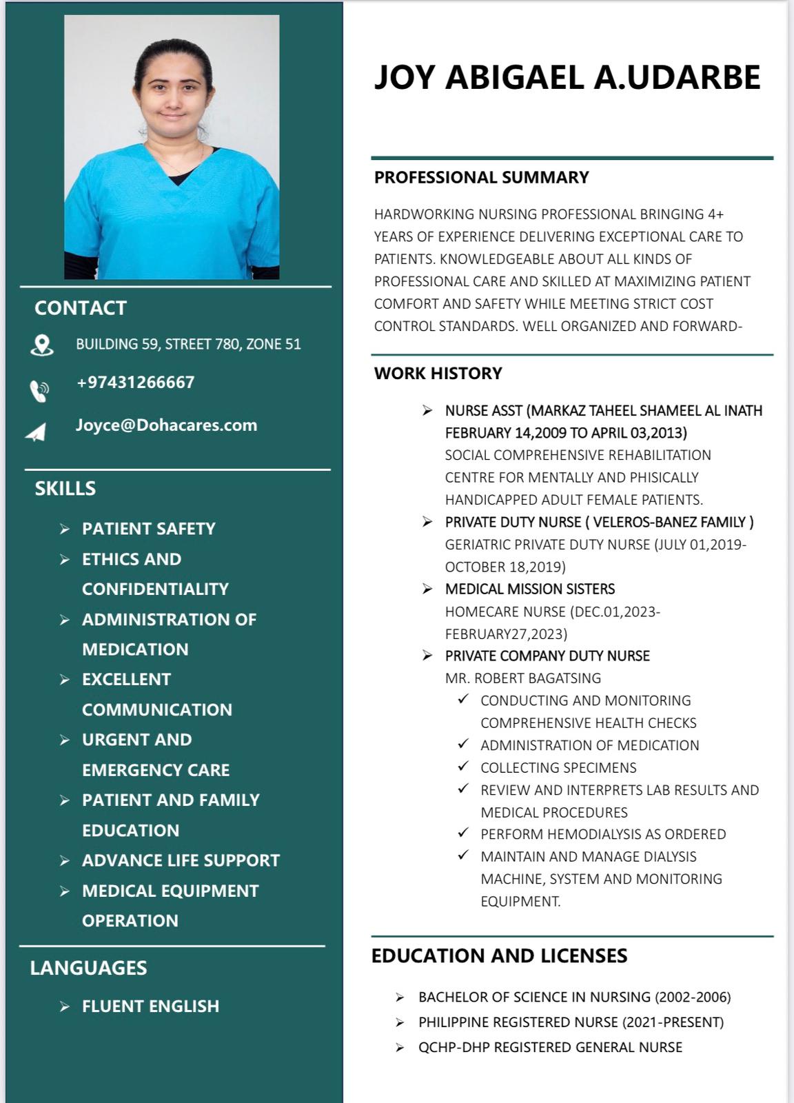 تحياتي من شركة دوحة كير للتمريض شركتنا توفر ممرضة مؤهلة و مقدم رعاية من الفيليبين بخبرة ممتازة لكل من الاطفال حديثي الولادة و كبار السن مع خدمة جيدة شكرا لكم.