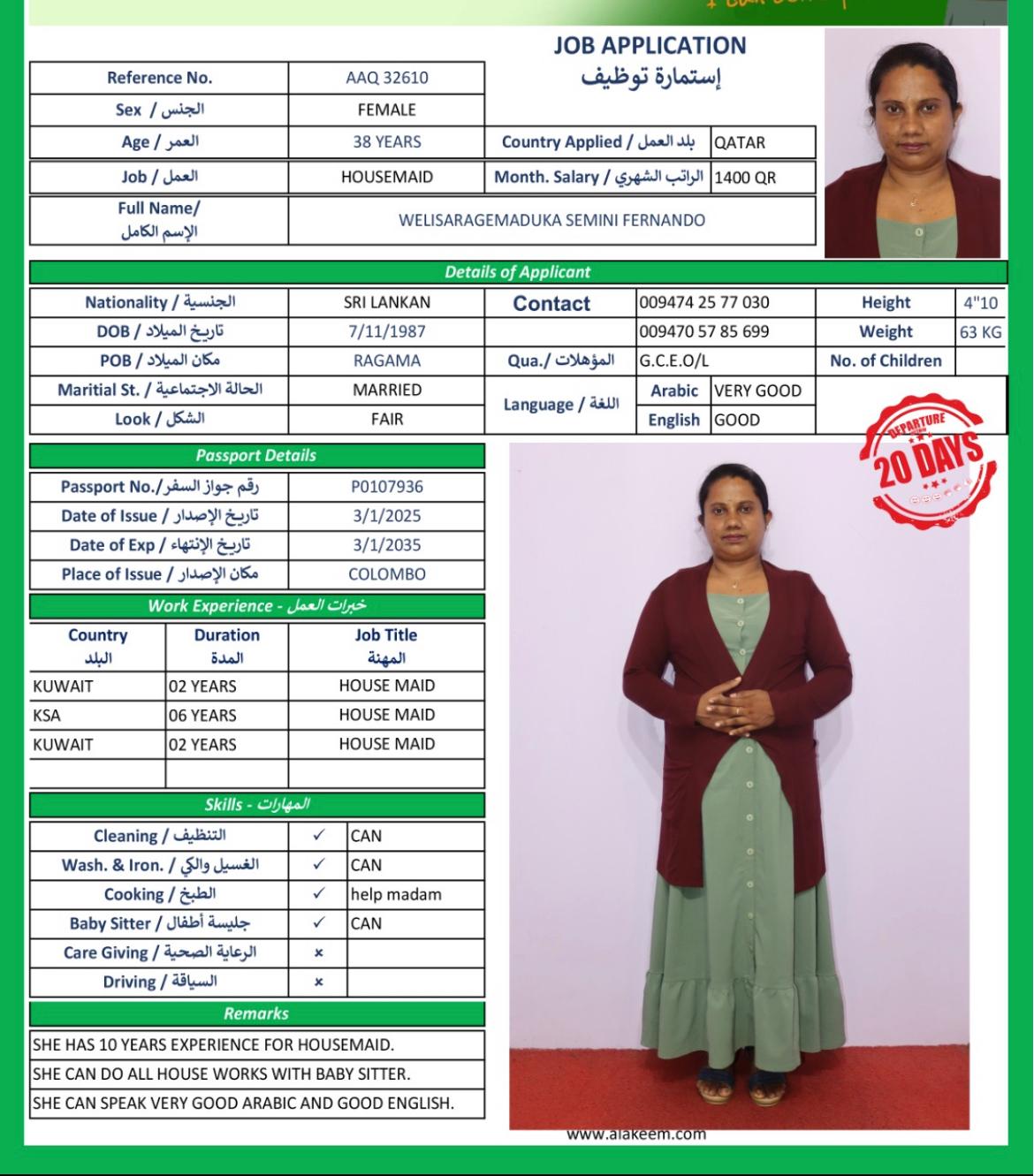 الاسم - عربي WELISARAGEMADUKA SEMINI FERNANDO