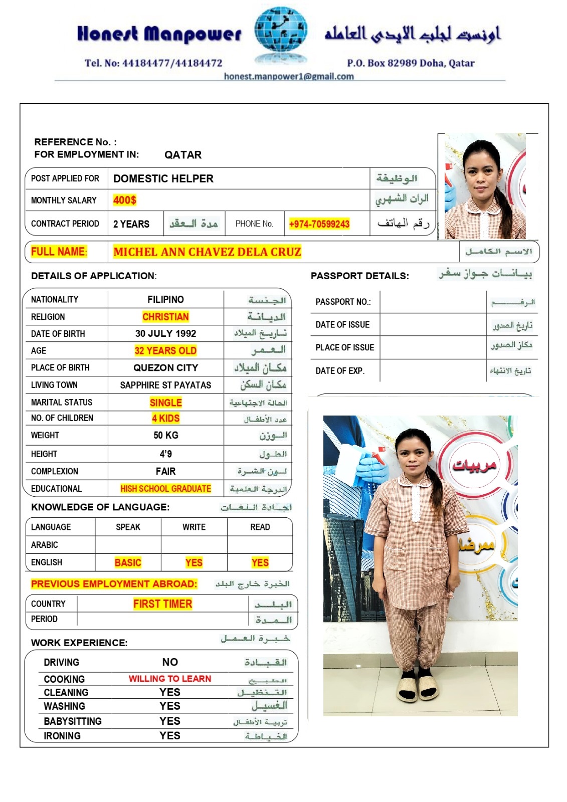 الاسم - عربي MICHEL CHAVEZ DELA CRUZ