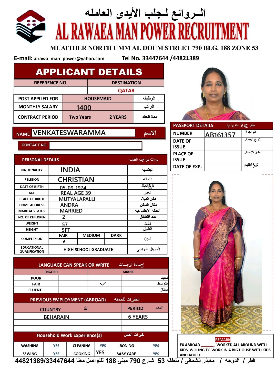 الاسم - عربي VENKATESWARAMMA COOK