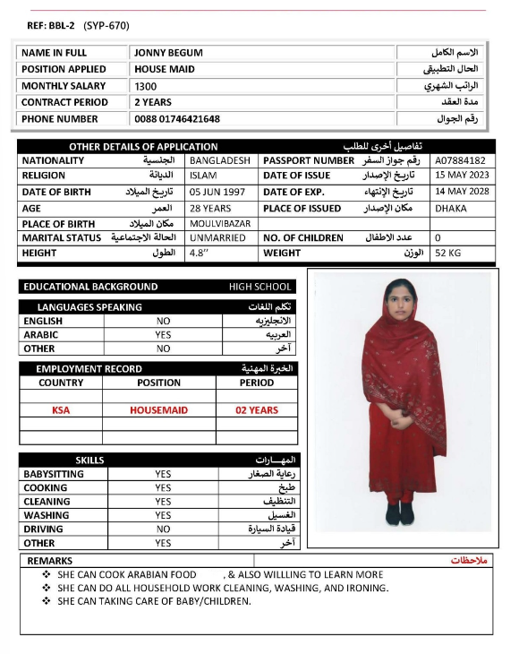 الاسم - عربي JONNY BEGUM