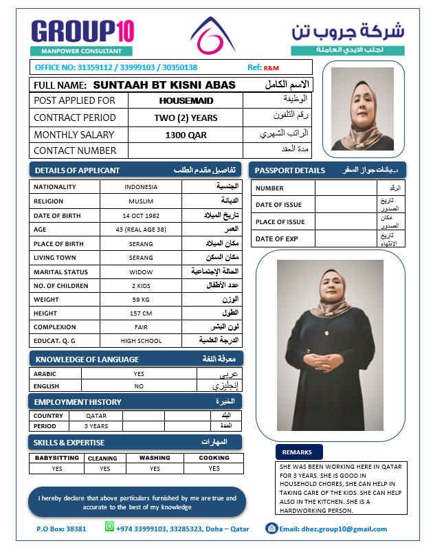 الاسم - عربي SUNTAAH BT KISNI ABAS