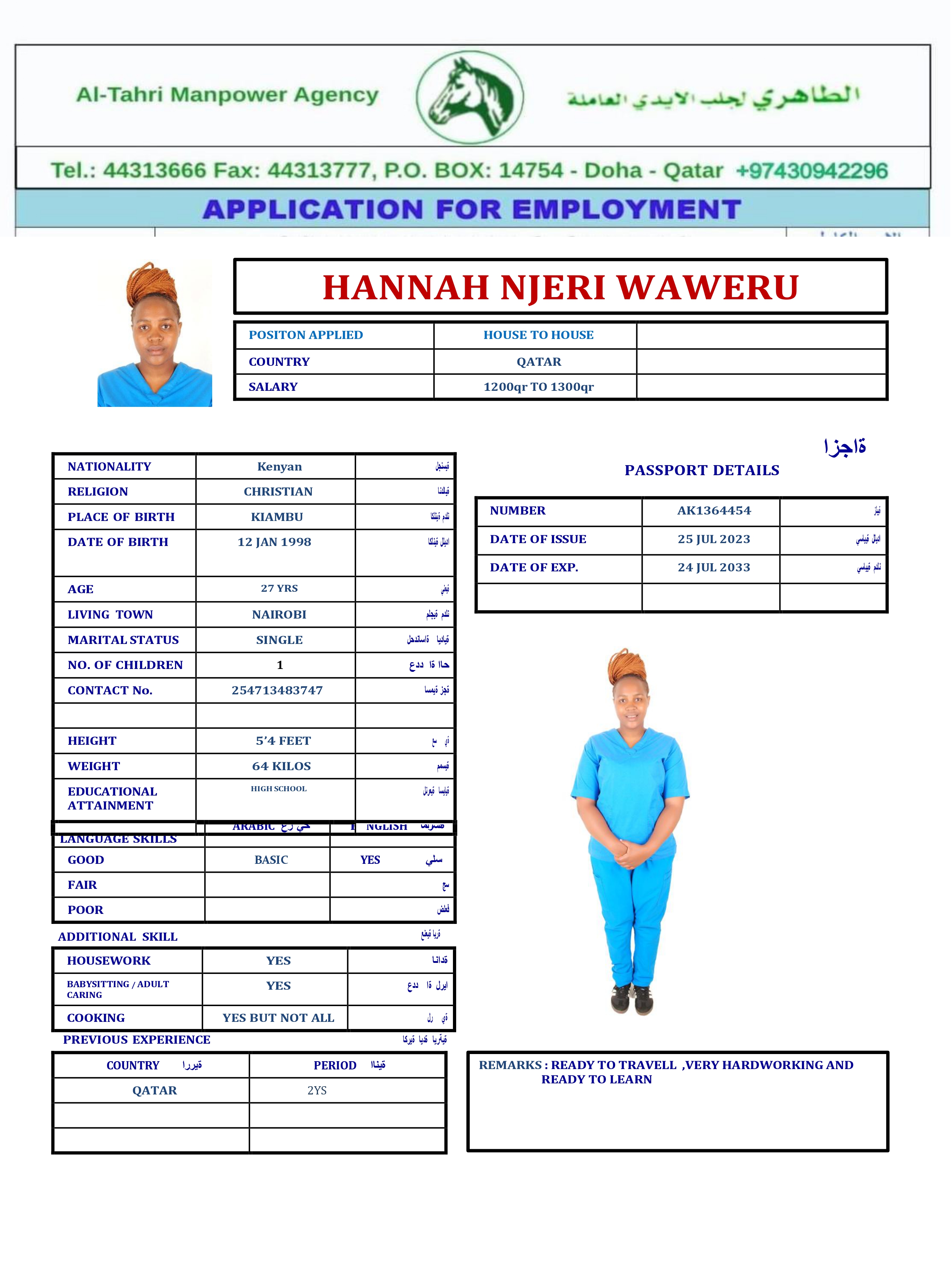 الاسم - عربي HANNAH NJERI _WAWERU