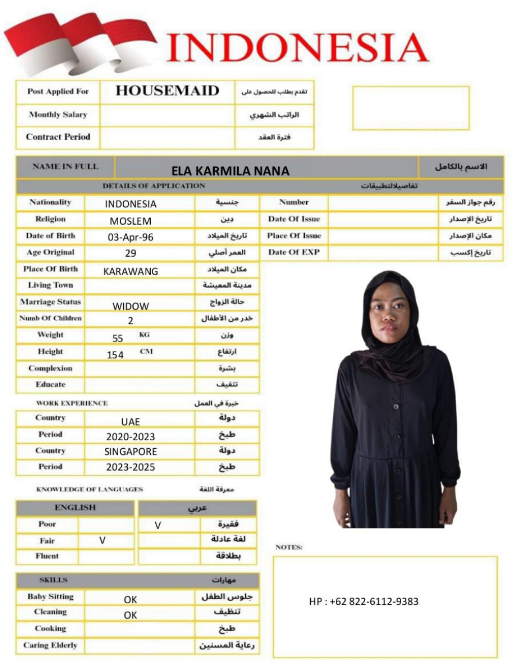 الاسم - عربي ELA KARMILA NANA