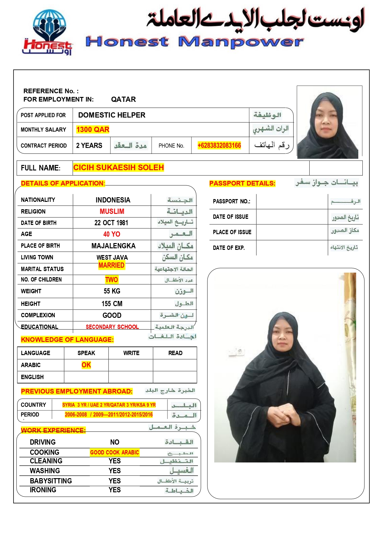 الاسم - عربي CICIH SUKAESIH SOLEH