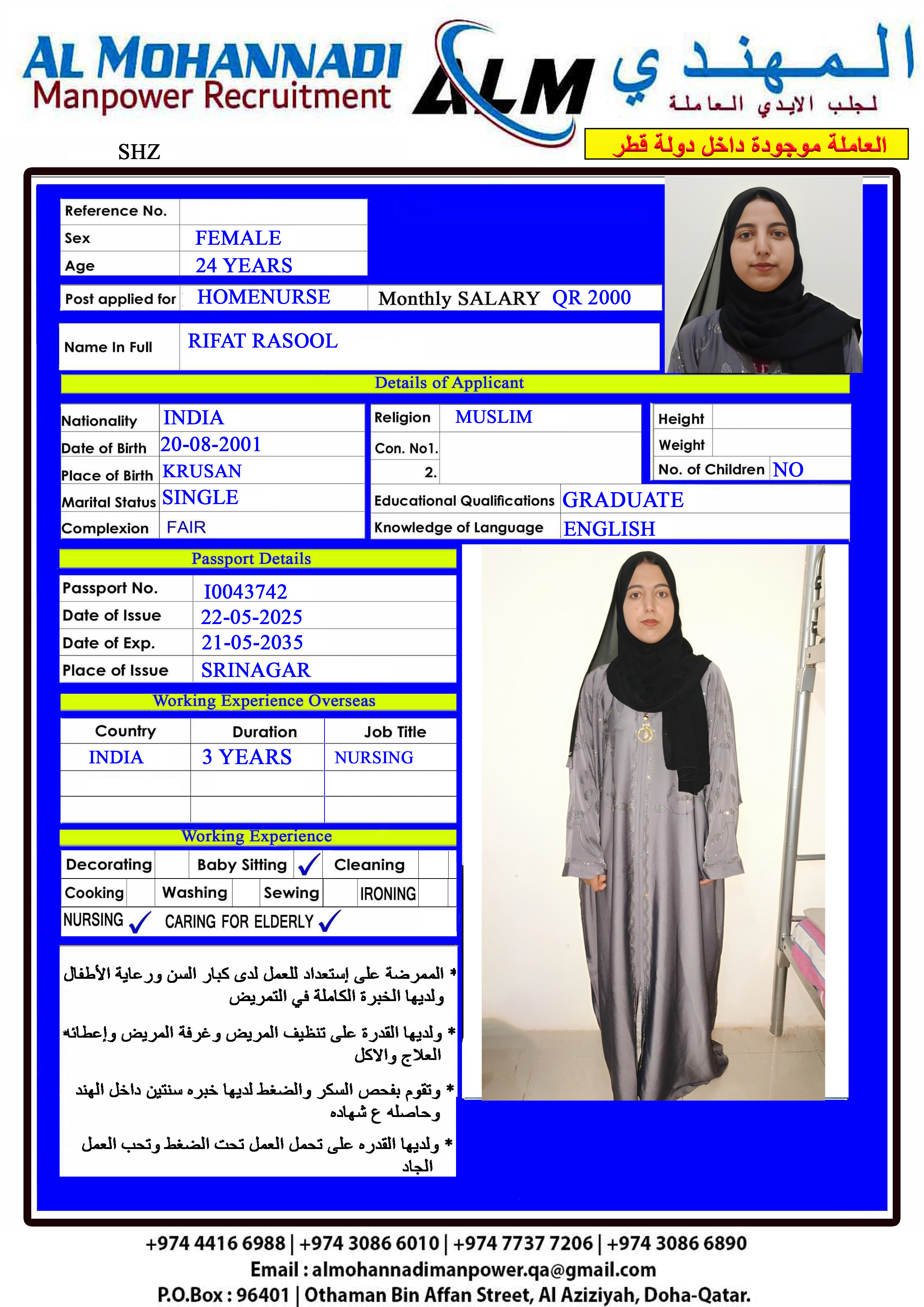 البريد الإلكتروني almohannadimanpower.qa@gmail.com