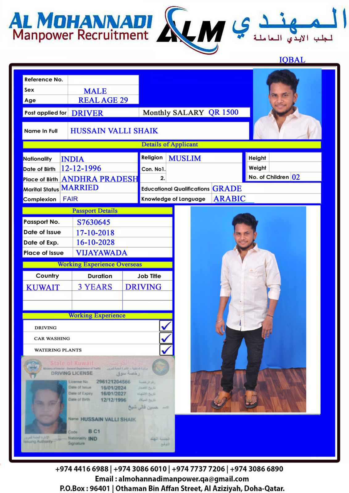 الاسم - عربي HUSSAIN VALLI SHAIK
