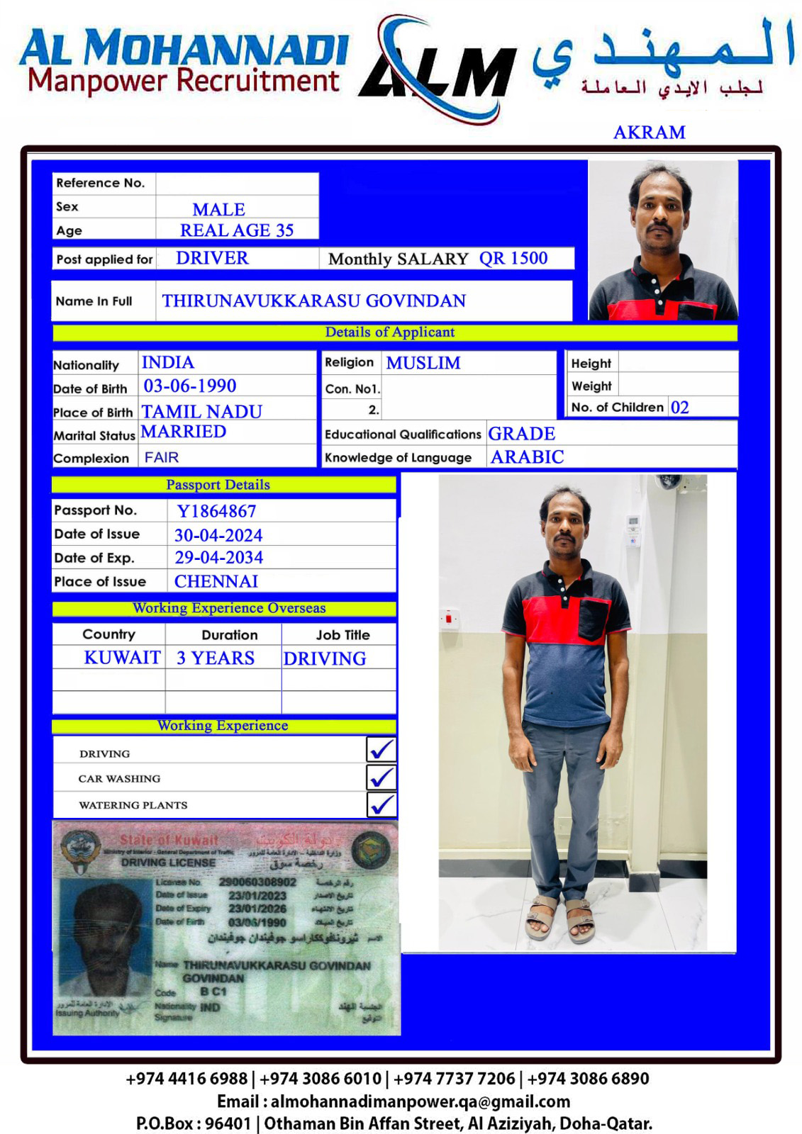 الاسم - عربي THIRUNAVUKKARASU GOVINDAN