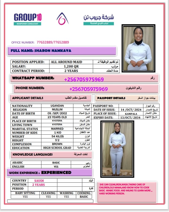 الاسم - عربي SHARON NAMKAYA /UGANDA ALL AROUND MAID