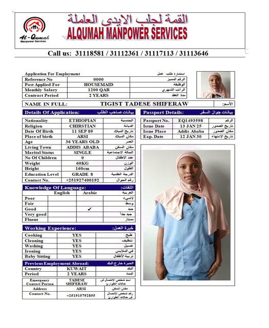 الاسم - عربي TIGIST TADESE SHIFERAW