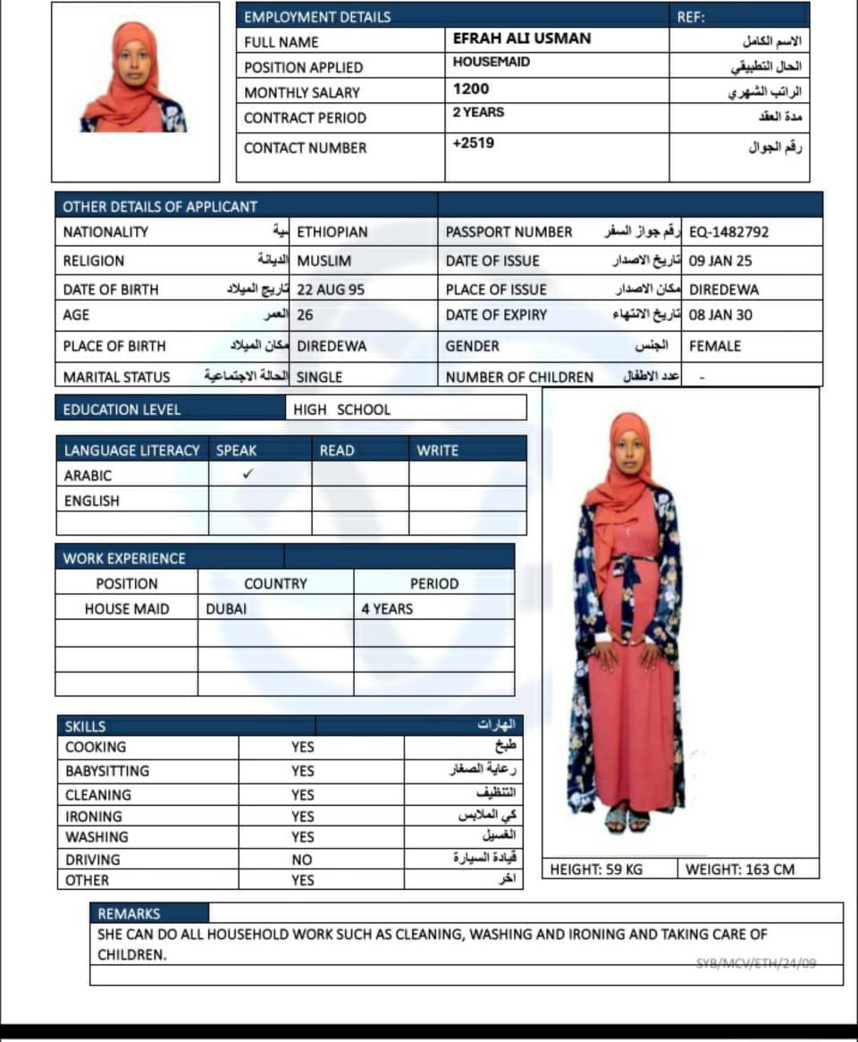 SHE CAN DO ALL HOUSEHOLD WORK SUCH AS CLEANING, WASHING IRONING AND COOKING AS WELL