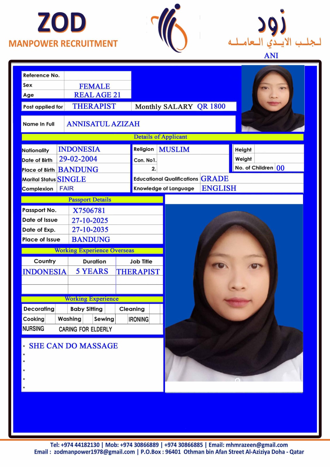 الاسم - عربي ANNISATUL AZIZAH