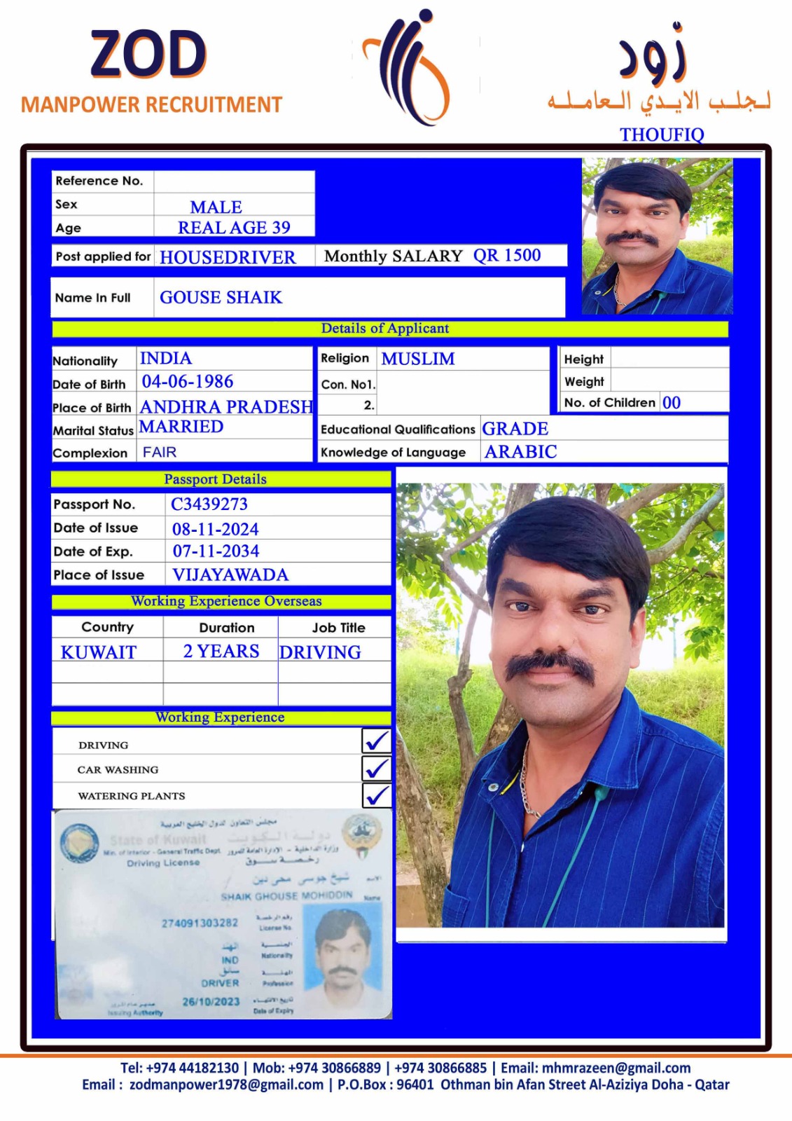 الاسم - عربي GOUSE SHAIK