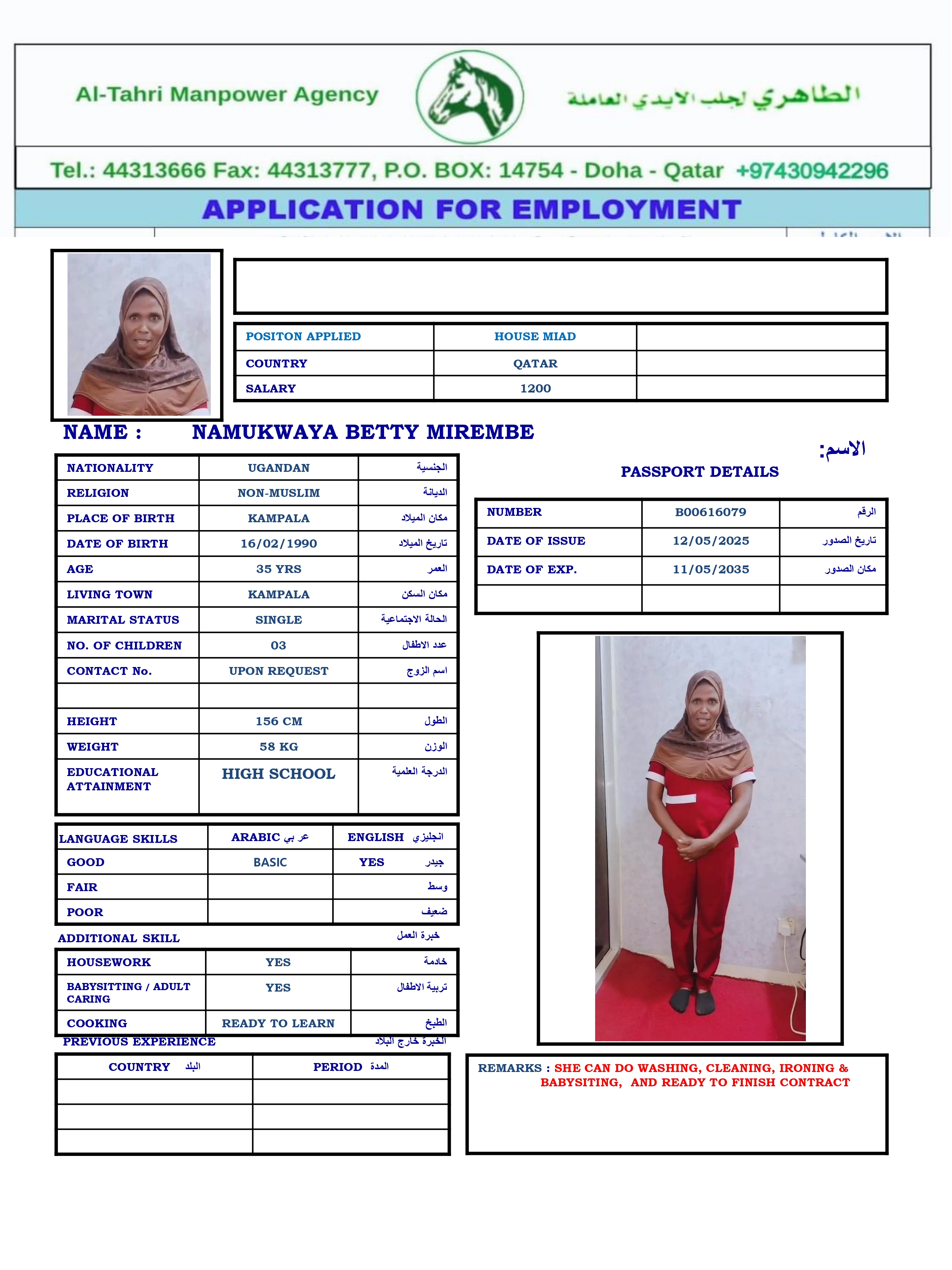 الاسم - عربي BETTY MIREMBE _NAMUKWAYA