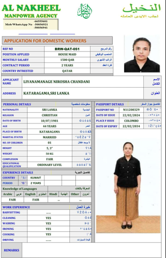 الاسم - عربي LIYANAMANAGE NIROSHA CHANDANI