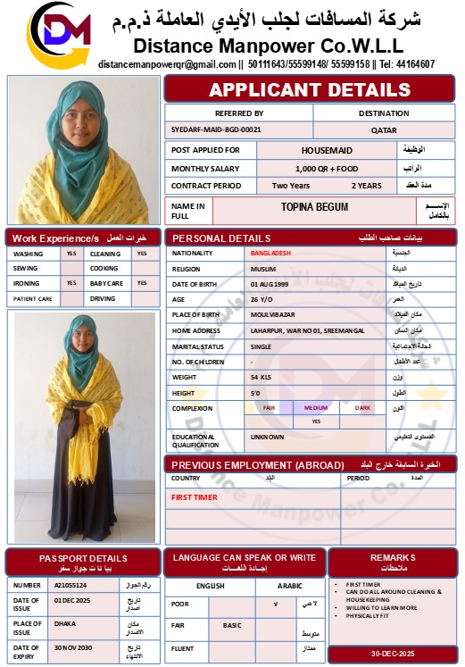 الشركة ‏ المسافات لجلب الايدي العاملة H