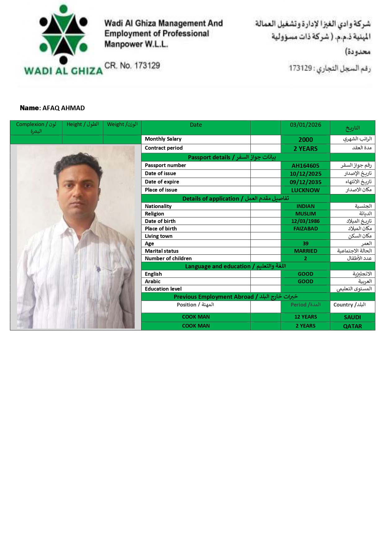 بيانات العامل