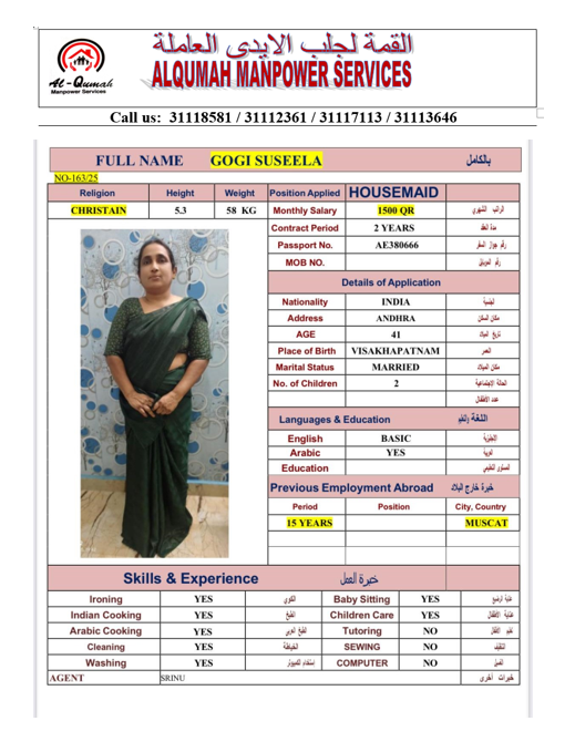 الاسم - عربي SUSEELA GOGI