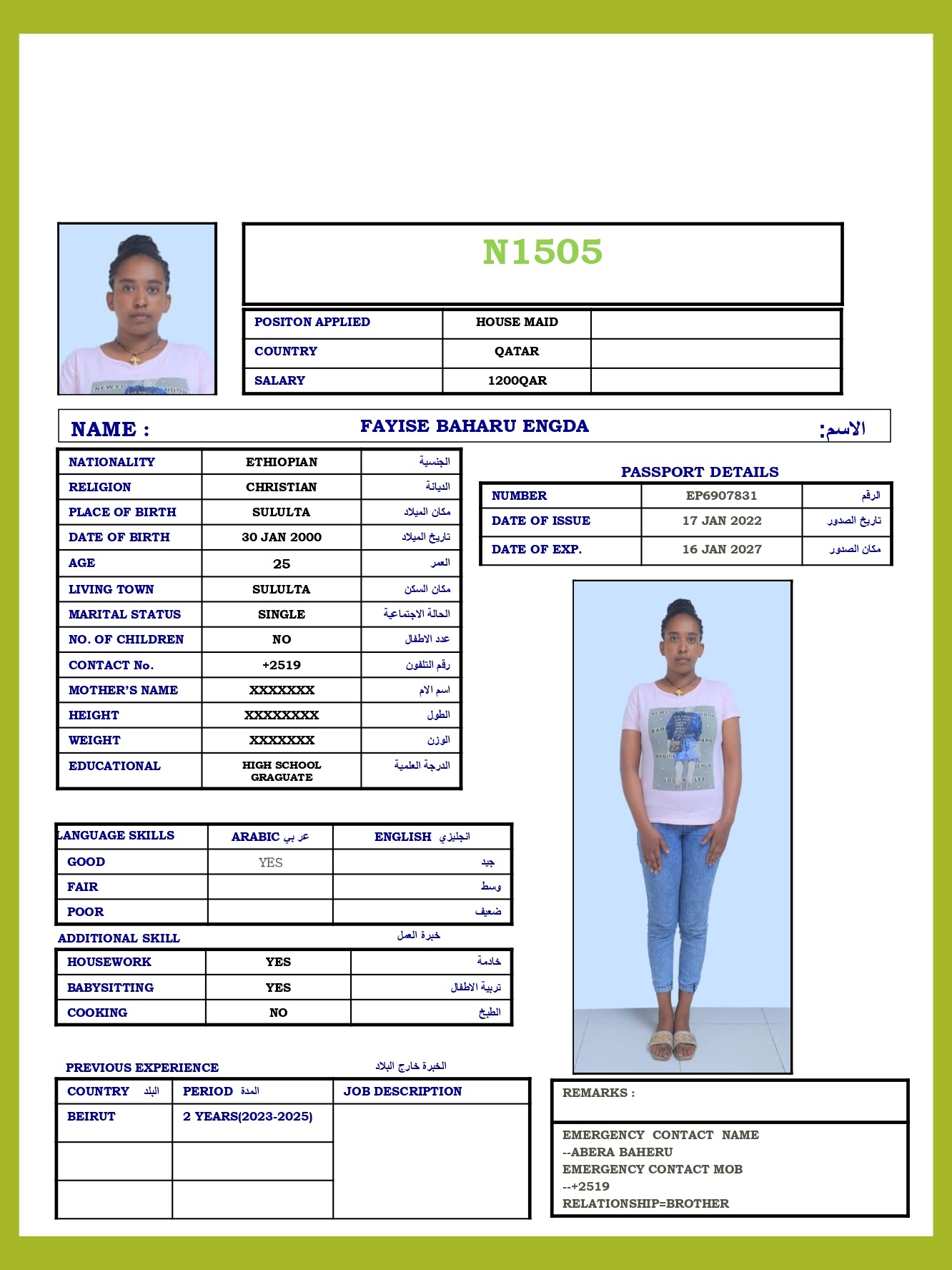 المهنة عاملة منزلية