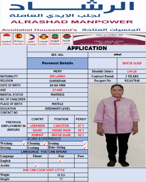 المهنة عاملة منزلية