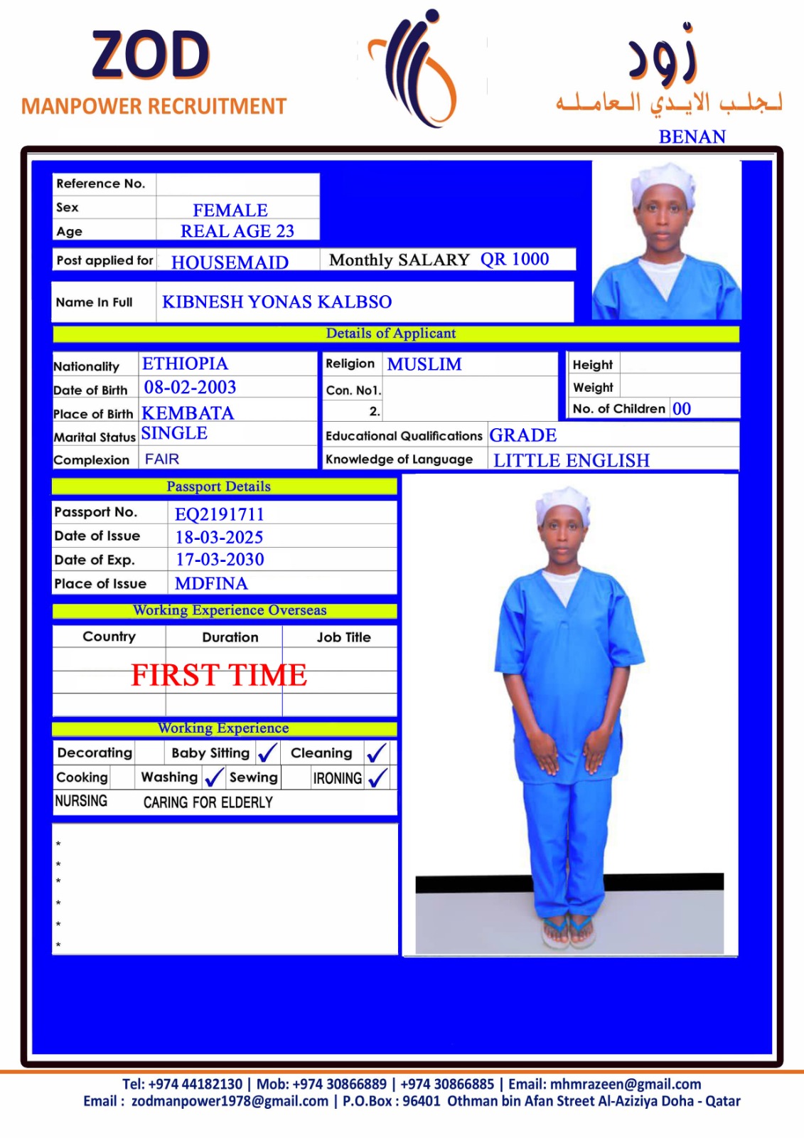 الاسم - عربي KIBNESH YONAS KALBSO