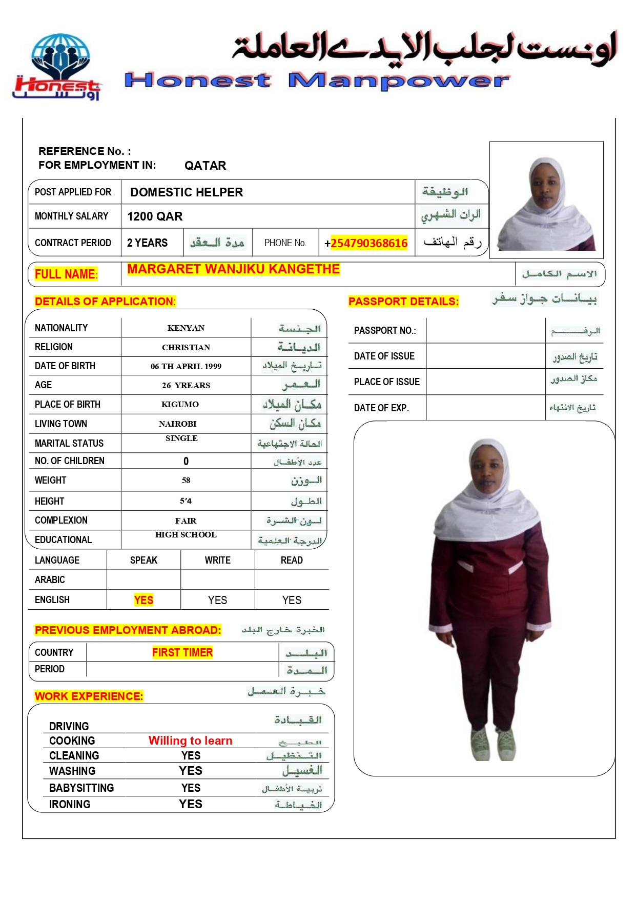 الاسم - عربي MARGARET WANJIKU KANGETHE